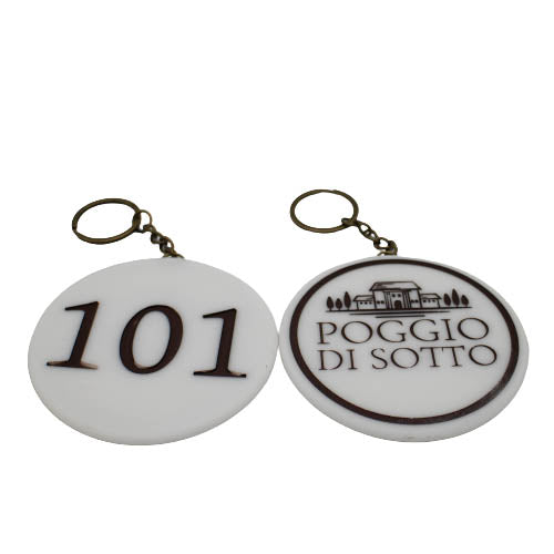 Leggero e resistente, è perfetto per le chiavi o la borsa, la sua dimensione massima richiedibile è di 4X4 centimetri.